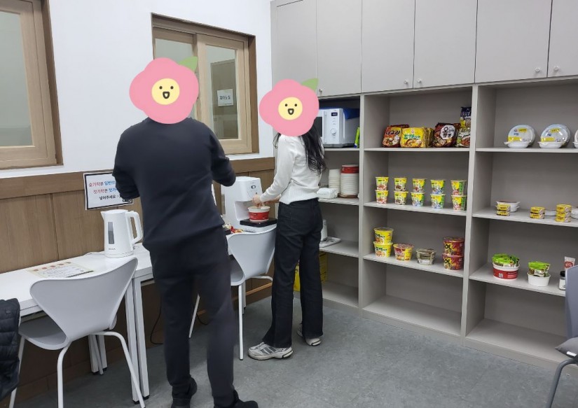 주먹밥, 라면, 음료 등을 제공하는