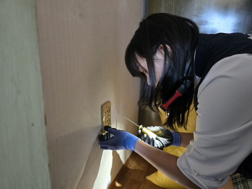 벽면 콘센트들을 수리하고