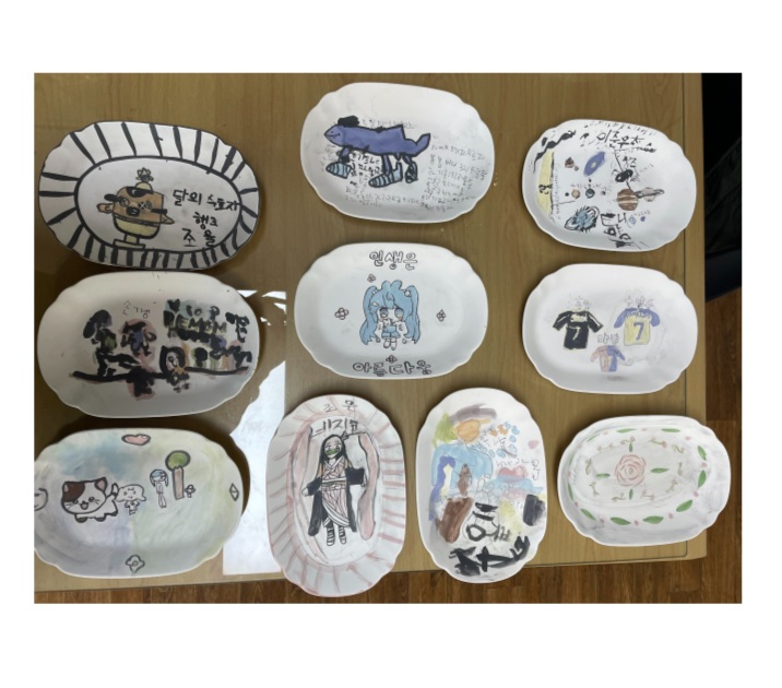 자신만의 그림으로 도자기 접시를 완성한 아이들!