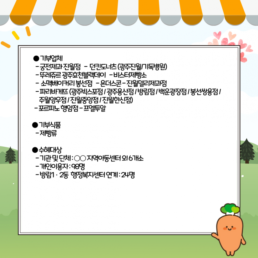 목록 활동사진 [푸드뱅크]남구기초푸드뱅크 3월 4주차 기부식품 현황 안내 페이지 정보 작성자 최고관리자 댓글 0건 조회 26회 작성일 26.04.02 본문 기부처 주차별홍보 댓글 0 댓글목록 등록된 댓글이 없습니다.
